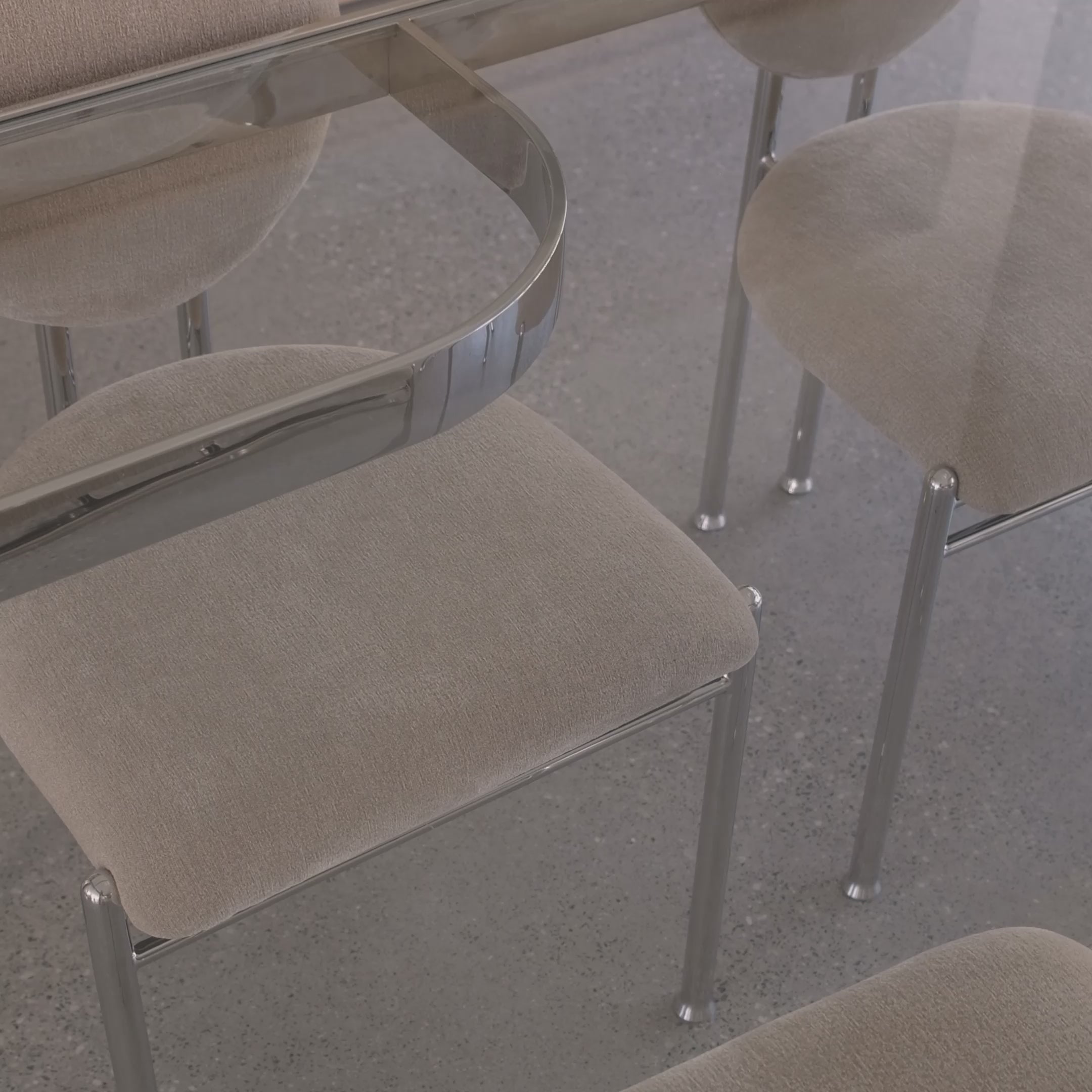 The Henrietta Dining Chair features a polished steel frame and a circular, upholstered backrest. The open structure keeps it visually light, while the curved back and cushioned seat offer everyday comfort. Its intersecting lines and curved geometry give the chair an architectural presence in dining or studio settings. Part of the Hakusho collection, Henrietta sits comfortably around minimal timber tables or layered in mixed-material spaces - its form designed to complement, not compete.
